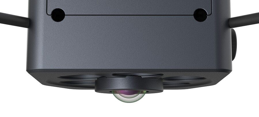 Cámara 4K montada en e-PTZ (pan-tilt electrónico), con visión panorámica de hasta 360° y vista hemisférica de 180°. Iluminación potente de hasta 12 000 lúmenes