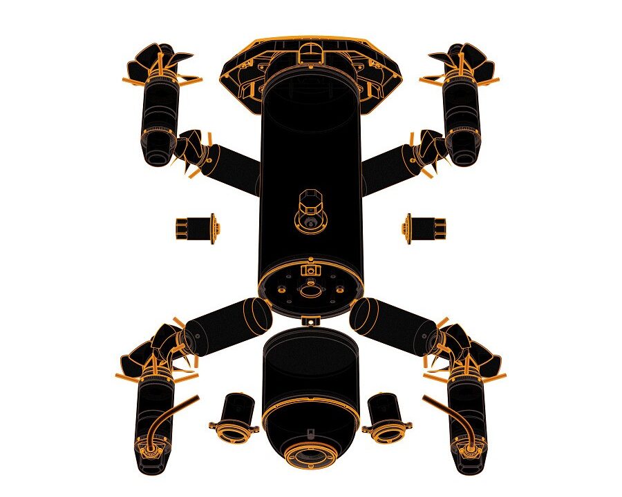 Ocho propulsores vectoriales permiten maniobras precisas, rotación en 360° y gran estabilidad.
